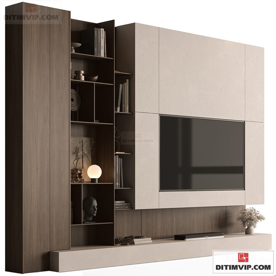 3dsky 2025- TV Wall Wooden – Set 195